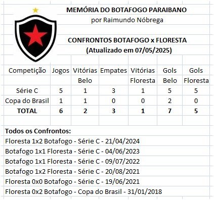 Assim, quando Botafogo e Floresta adentrarem o gramado do Estádio Almeidão no próximo domingo, 11 de maio de 2025, às 16:30 hs, farão o sétimo jogo da história dos confrontos entre essas duas equipes nordestinas.