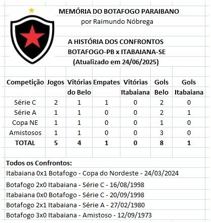 Pelos confrontos exibidos na planilha em anexo, o Botafogo nunca perdeu para o Itabaiana.